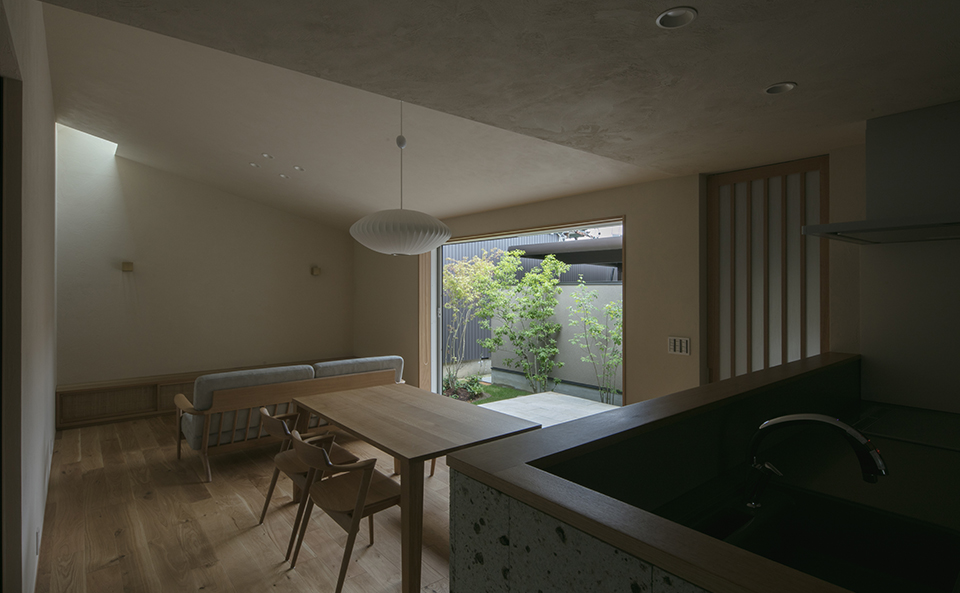 家中どこからでも眺めることができる明るい光庭を囲んだ、広々とした空間が特徴的な高山設計室。