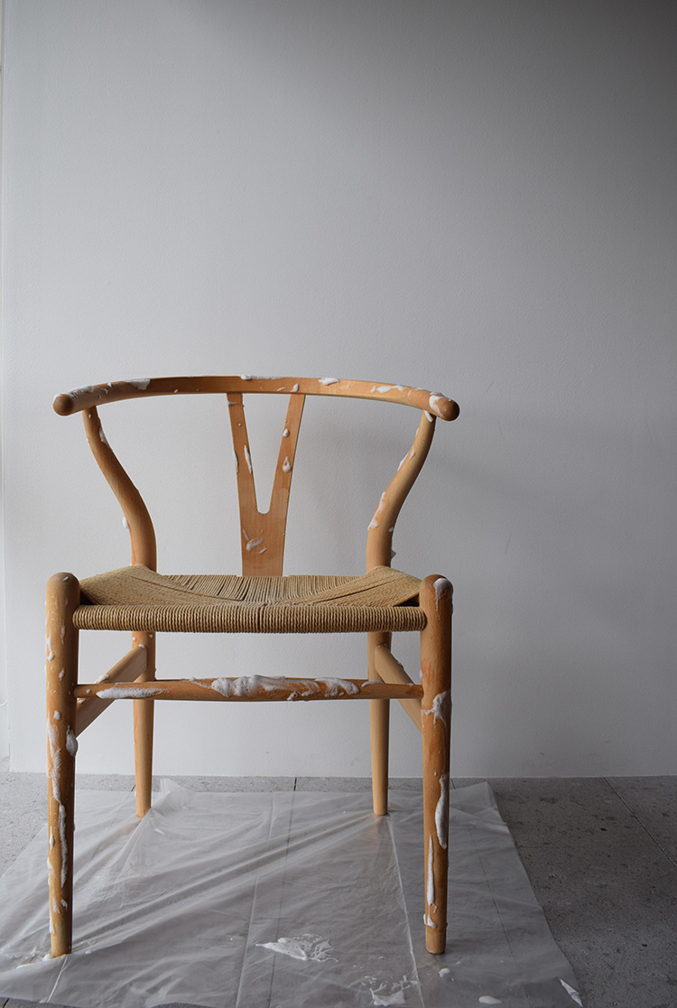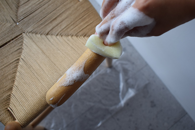 まずは石鹸をぬるま湯でといて泡立たせます。