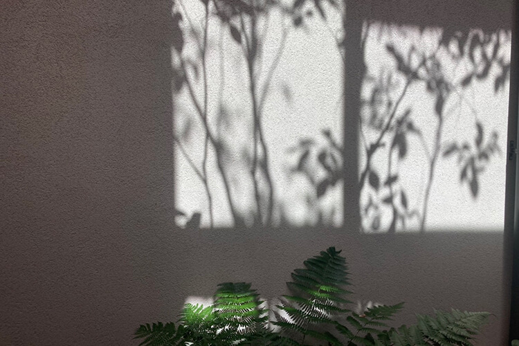 私は朝日と夕日の影が伸びる時間帯のモデルハウスが