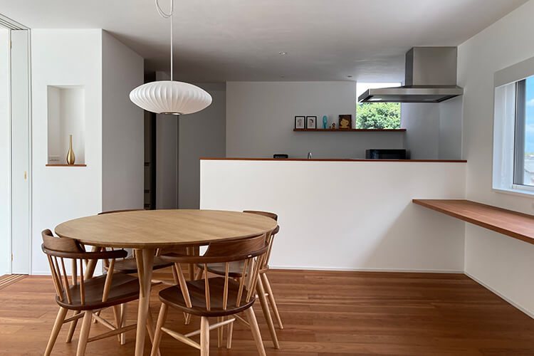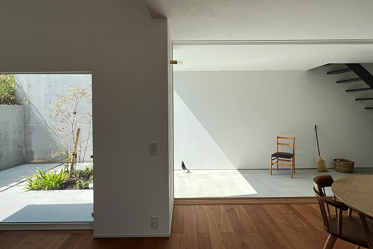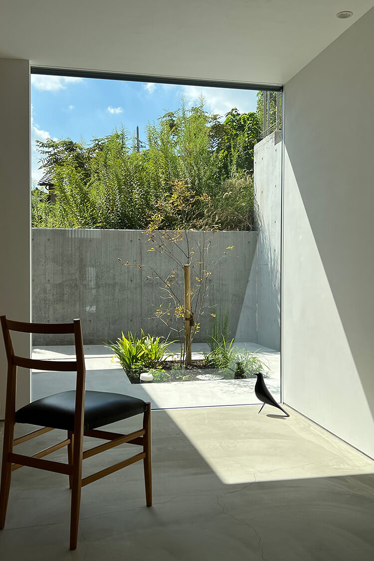 中庭のアオダモの根本に植えられた下草が可愛らしく
