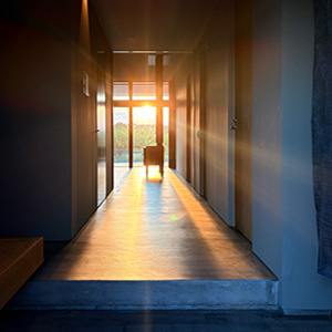 長い廊下の奥に、小さな椅子の影を引き連れて、