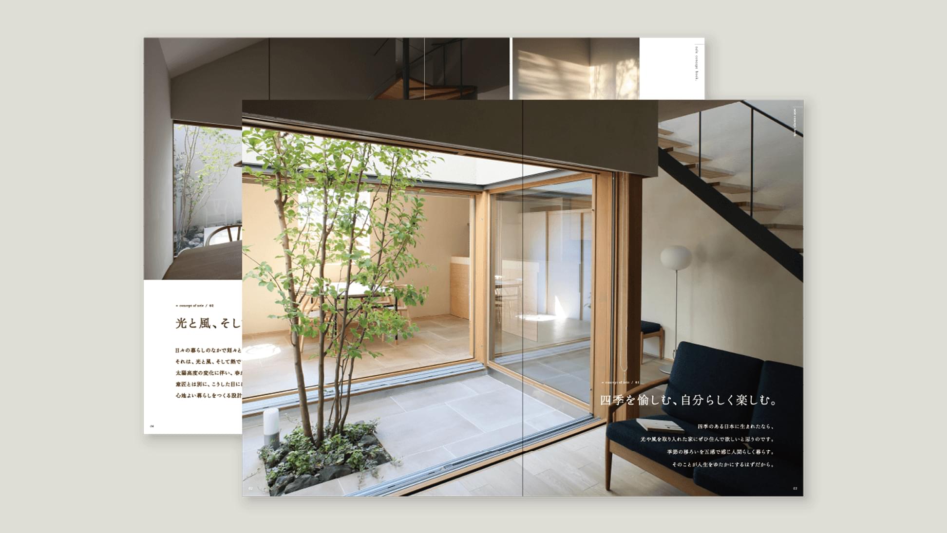 neieのコンセプトや施工事例についてまとめたカタログをセットにしてお届けいたします。