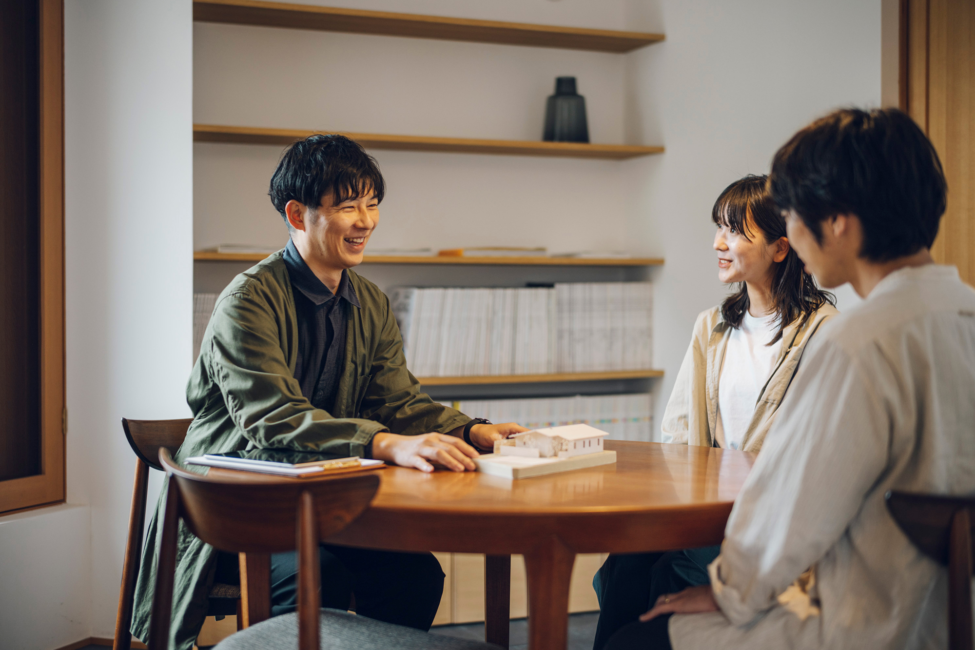 neieには、「営業」という職種の人がいません。家をつくる建築士が自ら、モデルハウスでお客さまをお迎えし、一からていねいに対話を重ねていきます。