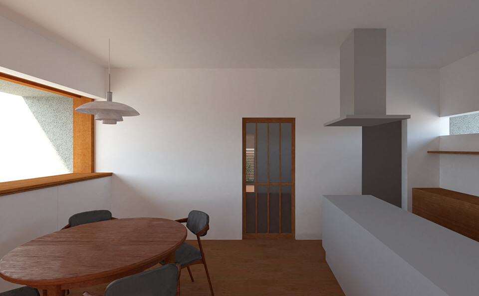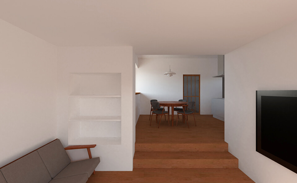 ふたつの居場所がゆるやかにつながり、奥行のあるのびやかな住まいです。
