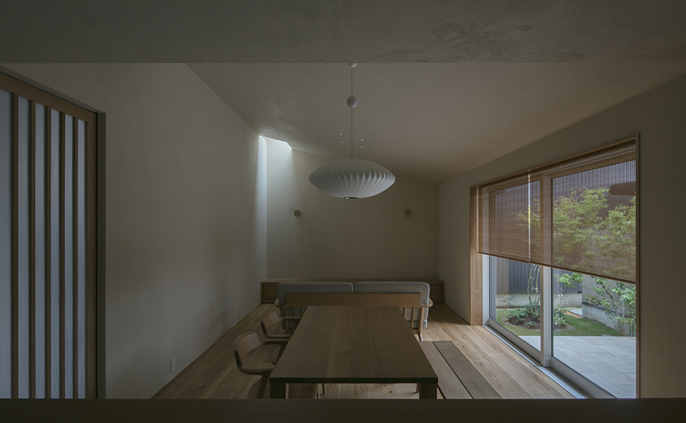 光が時間によって空間の印象を変貌させ、ただの日常が特別な時間へとかわる住まいです。