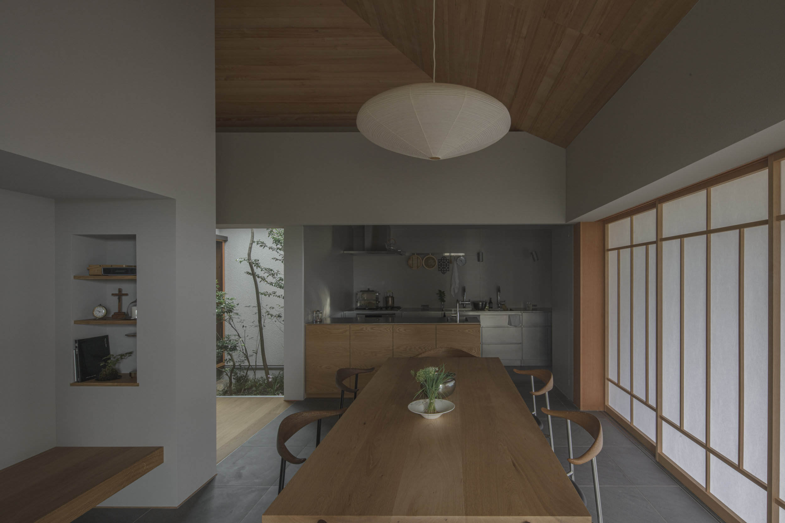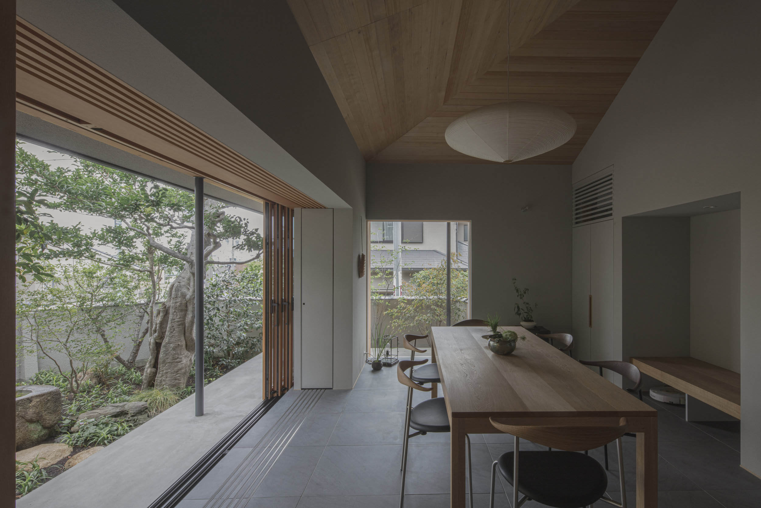 空や庭を眺めたり、月をゆっくり眺めたり、季節の変化を感じたり。催事や人々との交流を楽しんだり、旅先で好奇心に満ちたこれらの体験をするように日常生活の中でもそのような時間が生まれる場にしていきたいとお施主様にお伺いしました。 「旅するように暮らす」という施主様の想いが、先代から引き継がれた歴史ある敷地や庭で少しでも豊かに実現できるようお家づくりを進めてまいりました。