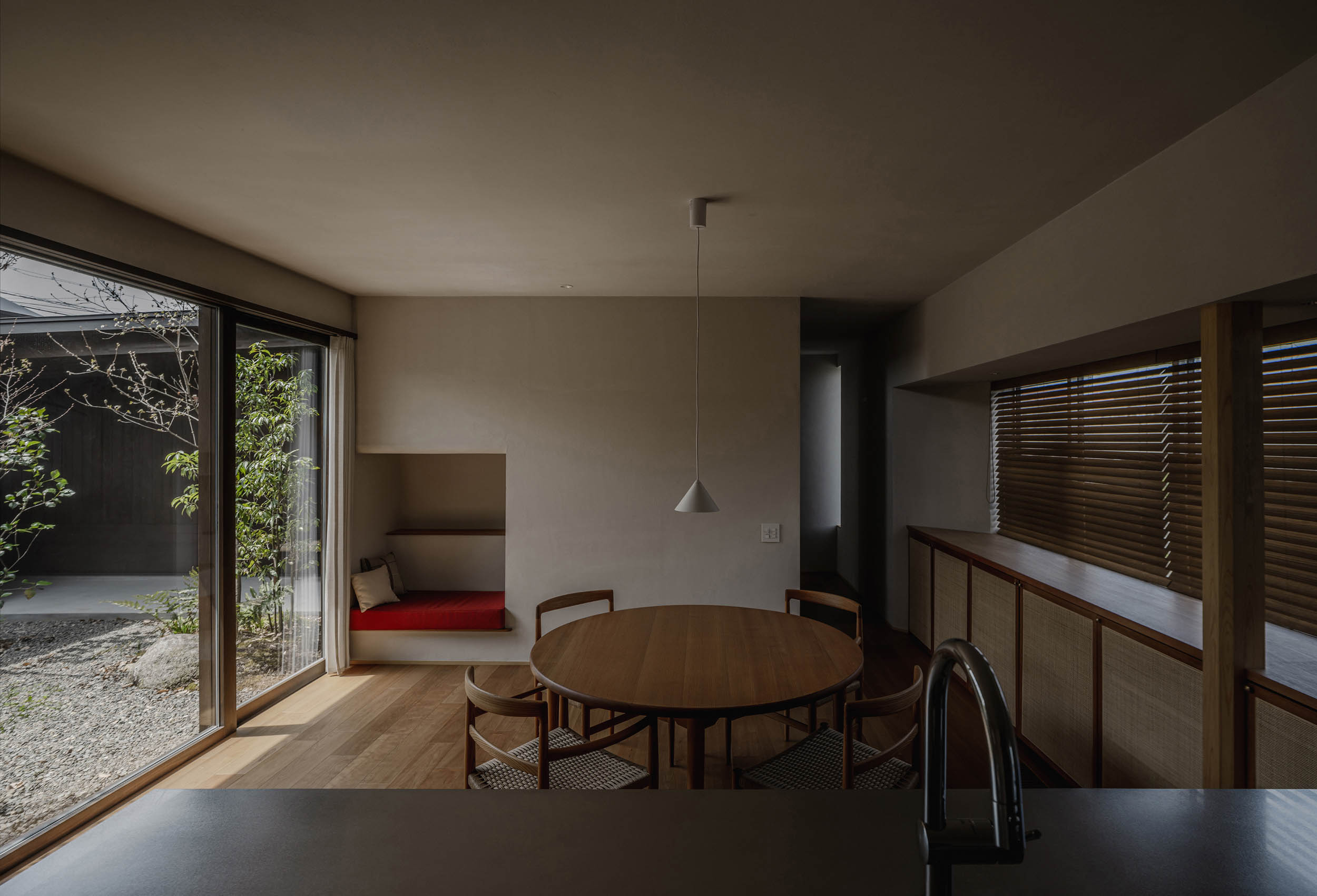 家の中心に据えられた、余生を共にする中庭という名の自然。 庭に面した多様な居場所から垣間見る自然の情景が、何気ない日々を豊かに引き立ててくれる住まいです。