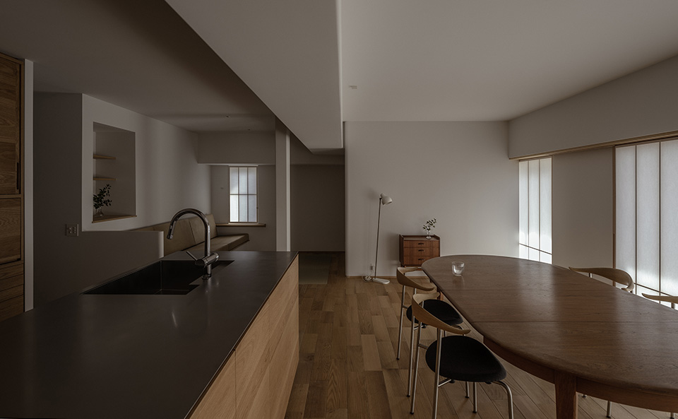敷地形状と生活動線を活かした庭の配置によって、外とのつながりを感じながら、内に開かれた安心感のある住空間を実現しています。