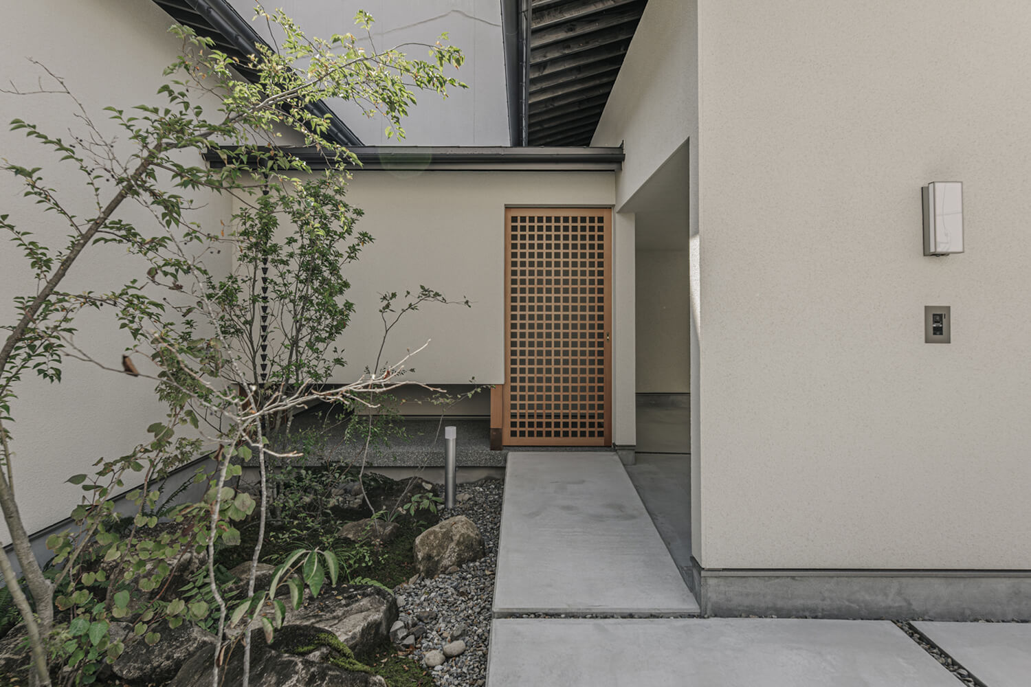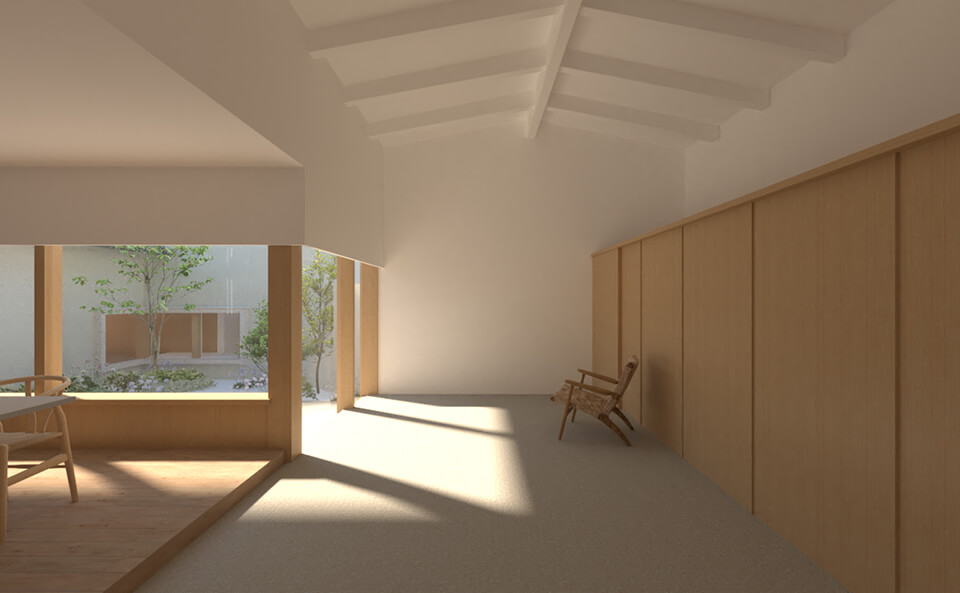 光・風・つながりを育む、自然と寄り添う住まい ── 3つの庭、前庭・中庭・奥庭を暮らしの中に取り入れた、自然と人が調和する住まいです。それぞれの庭が持つ異なる役割と空間性が、日々の暮らしに季節の変化や癒し、そして家族のつながりをもたらします。