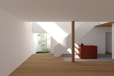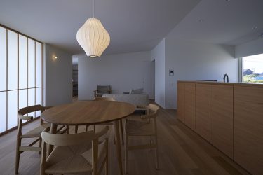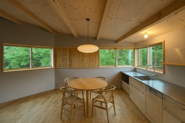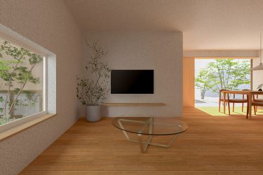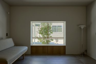 外と大きく繋がり、勾配天井によってより開放的に感じられる広々としたダイニング。日常の動線が絡まない位置に配置し、天井高を低く抑えた落ち着きのあるリビング。塀で囲ったお庭に面するそれぞれの空間では、夏の木漏れ日や冬の陽だまり、四季の移ろいなどが身近に感じられます。