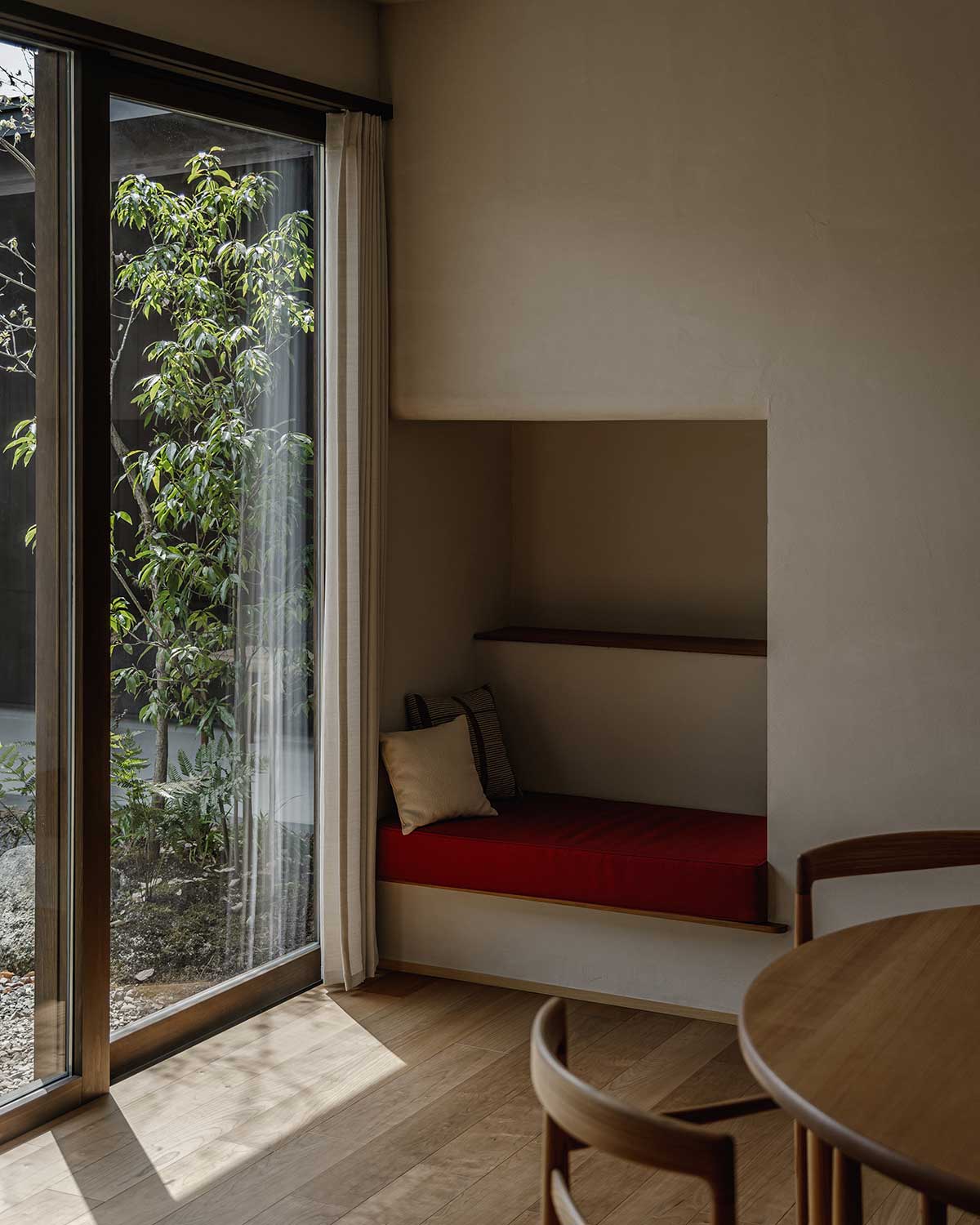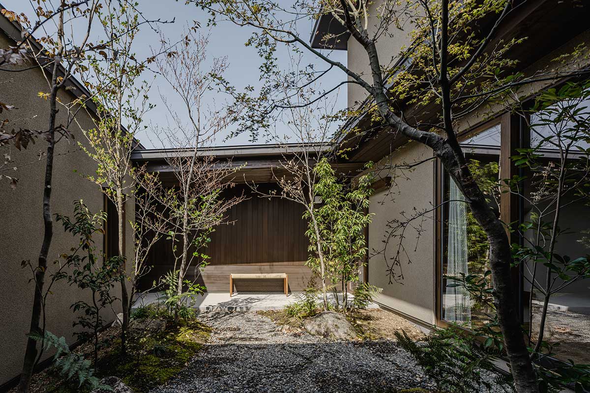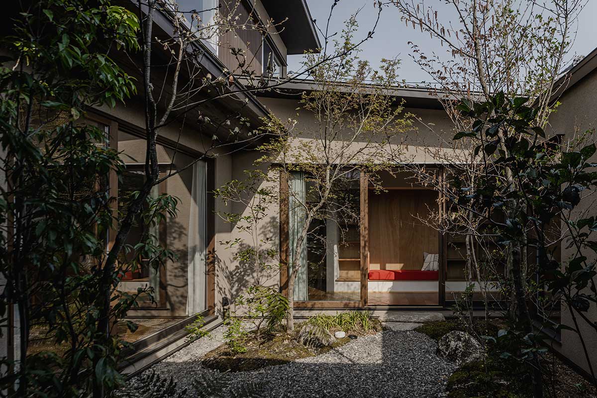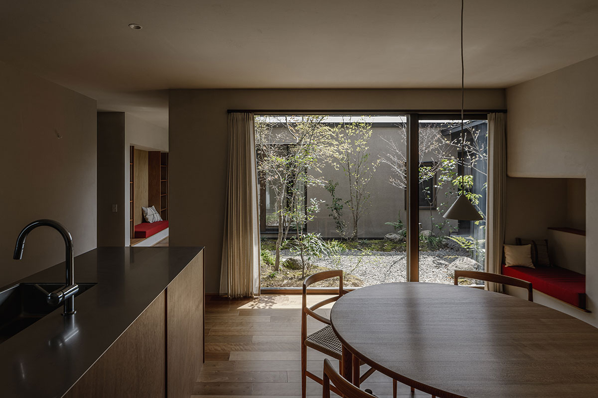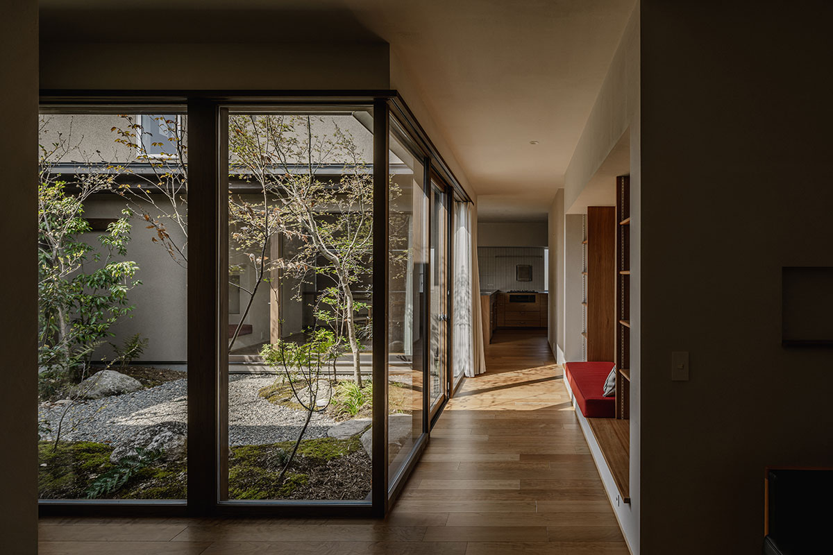 家の中心に据えられた、余生を共にする中庭という名の自然。庭に面した多様な居場所から垣間見る自然の情景が、何気ない日々を豊かに引き立ててくれる住まいです。