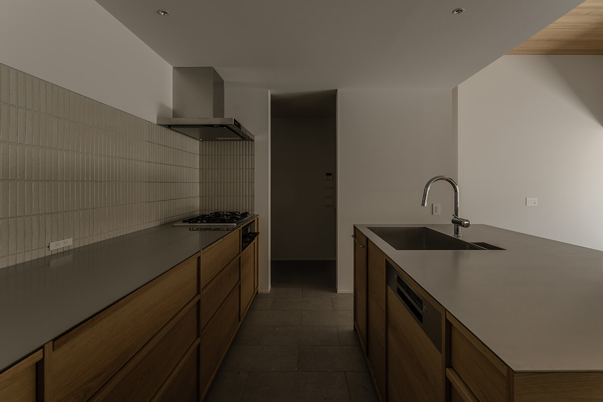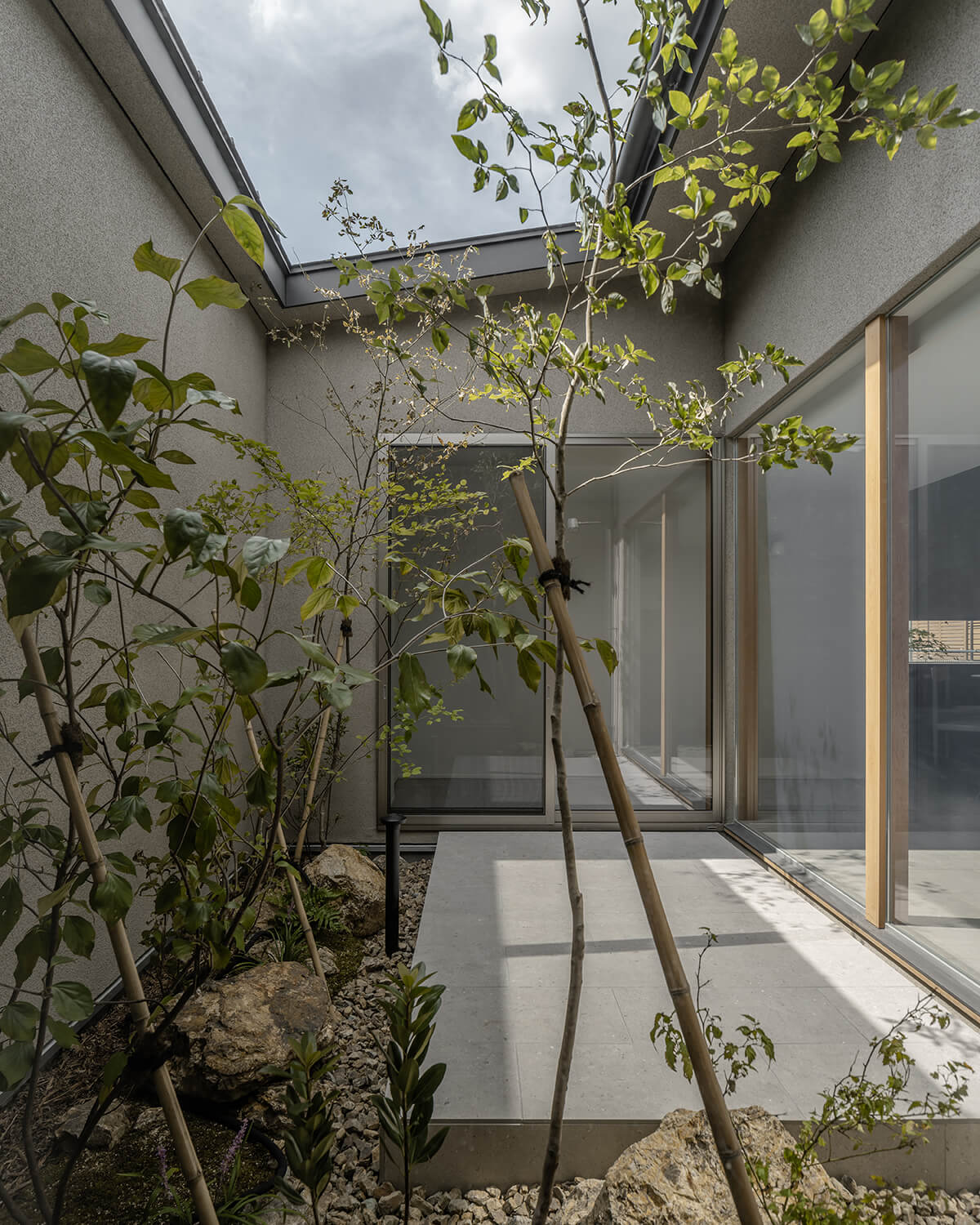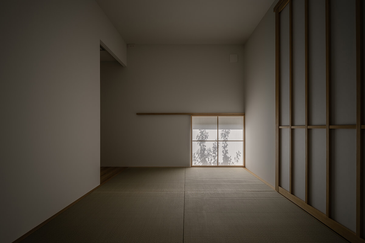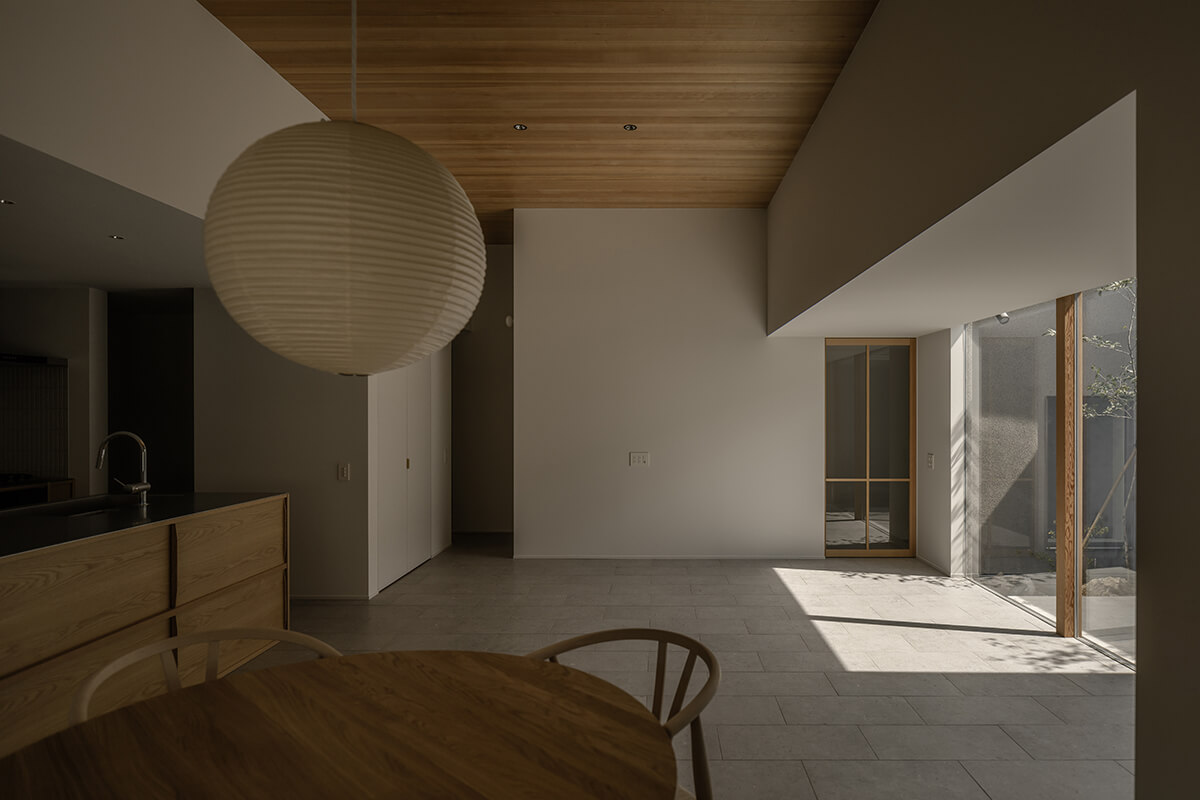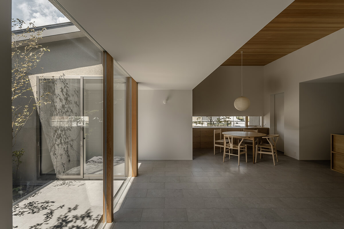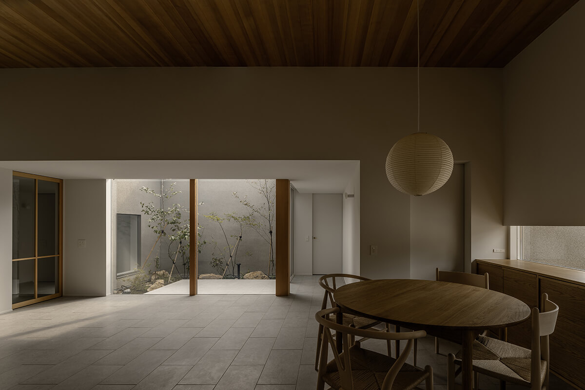 中庭を介したやわらかなつながりが空間を満たし、自然の揺らぎが、暮らしに奥行きをもたらします。時の流れが、少しだけゆるやかになるような住まいです。