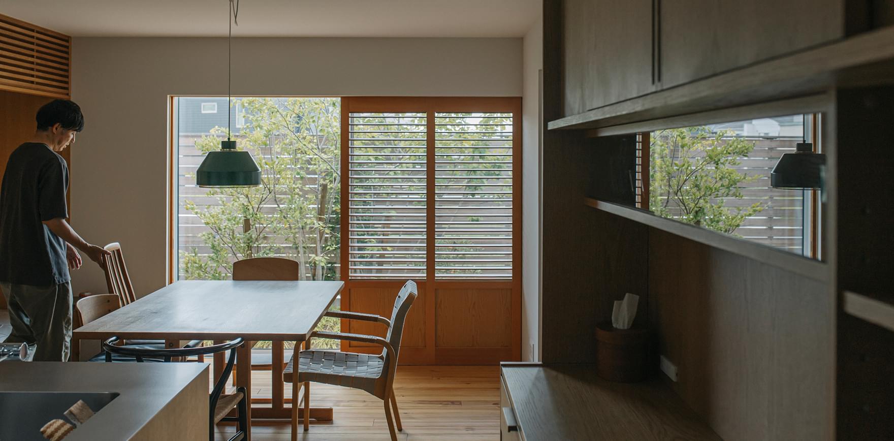 季節や時間の移ろいが光や音となって現れ、五感を通して自然とつながる住まいです。