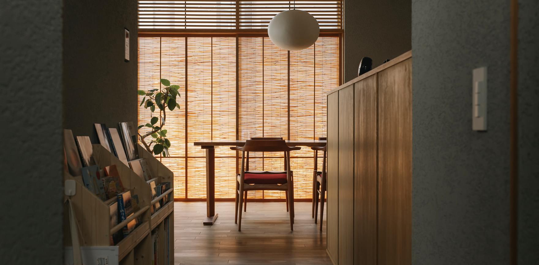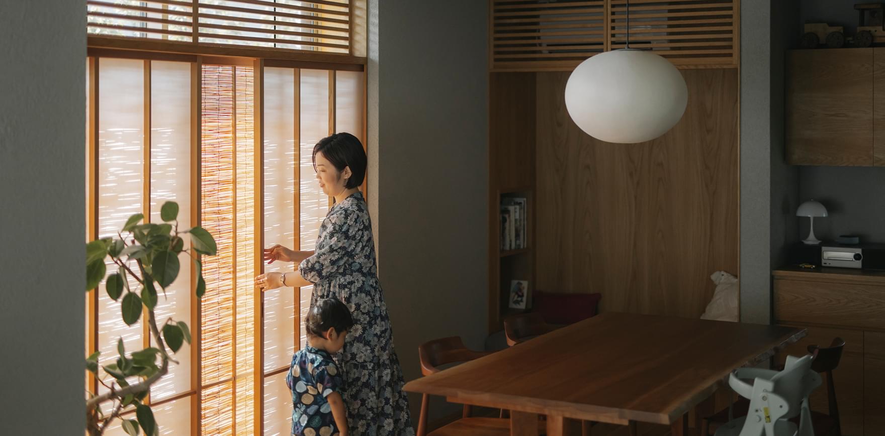 障子や簀戸、左官などの自然素材を活かし、光と熱を繊細に整える設計です。