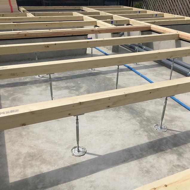 床を支える束に圧縮強度2トン以上を誇る鋼製束を採用。溶融亜鉛メッキ処理が施されているため、非常に耐久性に優れ錆やシロアリも寄せ付けません。