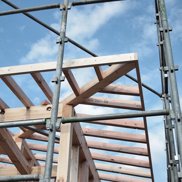 主要構造部には、無垢材の約1.5倍の強度を備えたレッドウッドの集成材を採用しています。無垢材に比べて反りなどが少なく、安定した強度を発揮します。