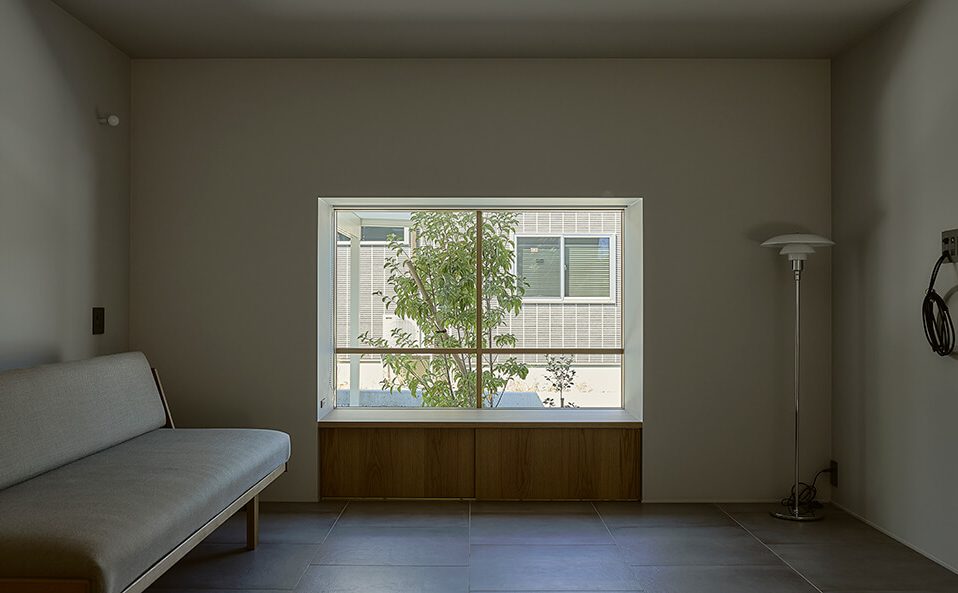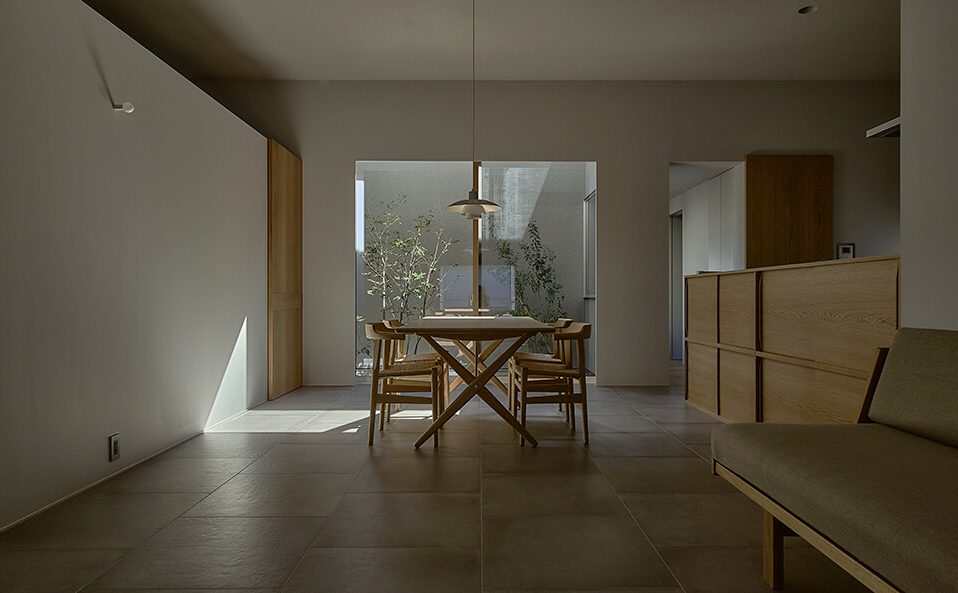 今回ご覧いただくのは、お引き渡しから約1年のお住まいです。お引渡しからの年月とともに、中庭は家族や猫の居場所となり、自然光や緑が日々の風景に溶け込んできました。