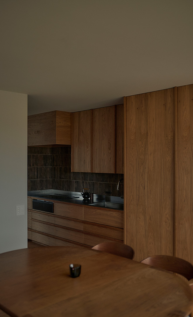 ネイエが大切にしている、手触りや質感の豊かな造作が随所に施されたこの住まいは、歳月を重ねるごとに深みを増し、より一層の愛着が育まれていきます。